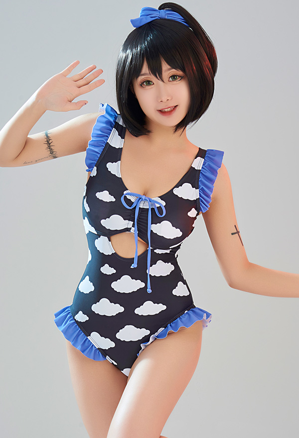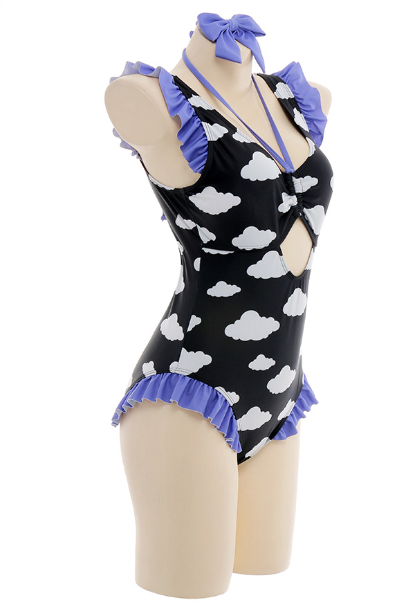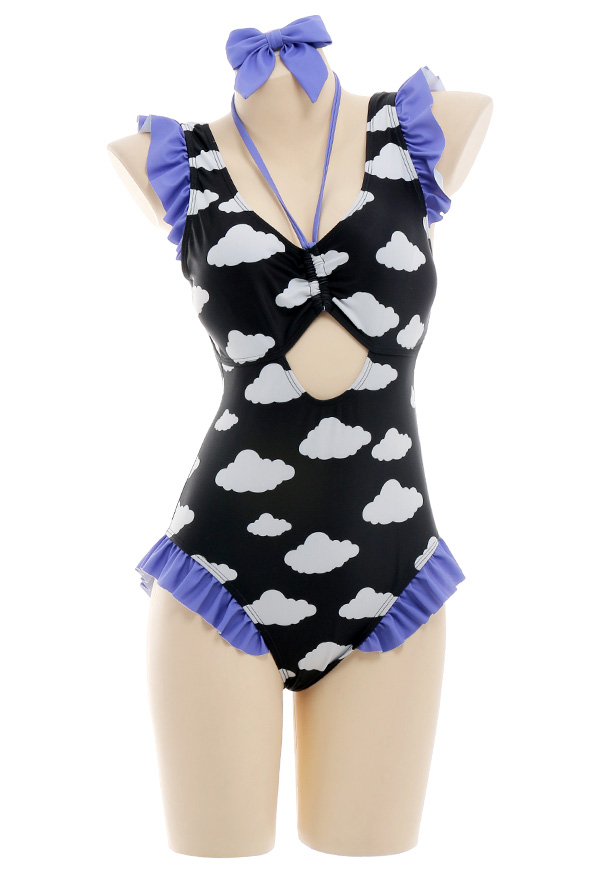 - This cute Dark Black Purple Cloud Cutout One Piece Swimsuit is your best choice for summertime.