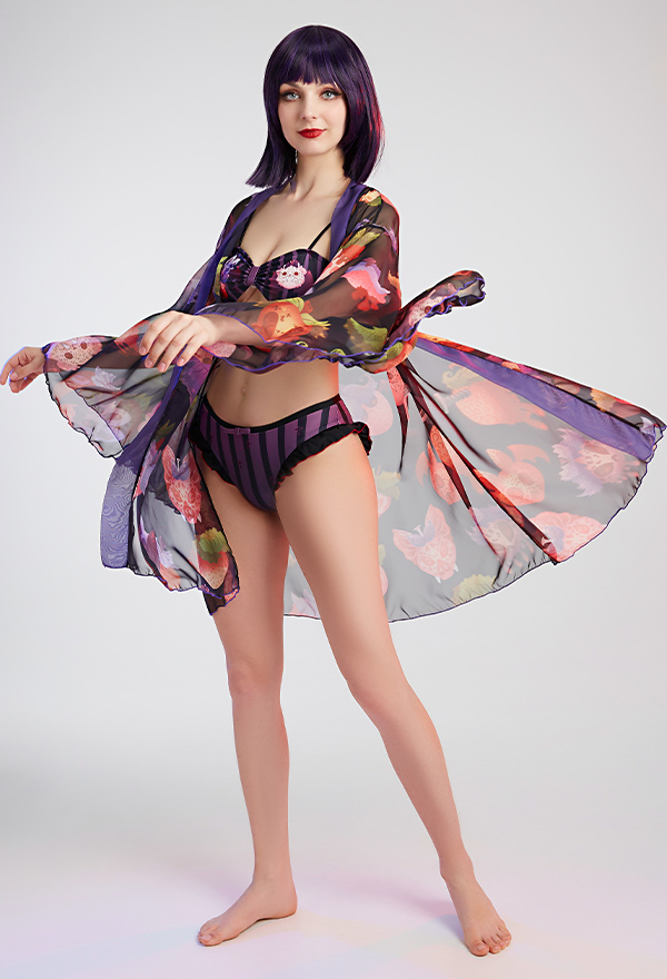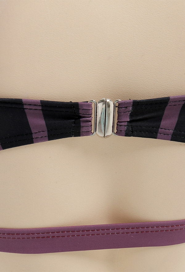 - Escape the ordinary in our Sexy Purple Black Striped Ruffles Bikini Set.