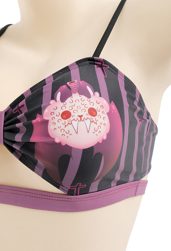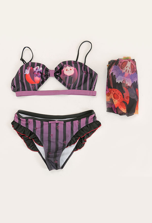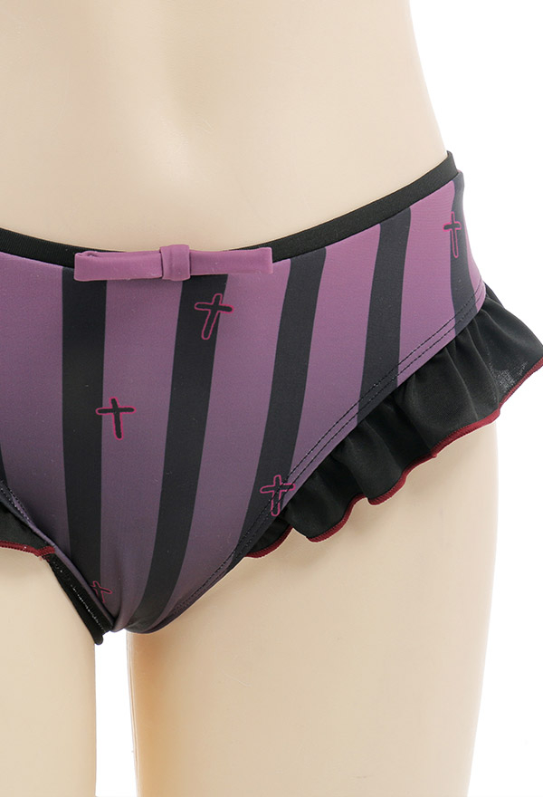 Bite Sugar Women Demon Purple Black Striped Ruffles Bikini Set