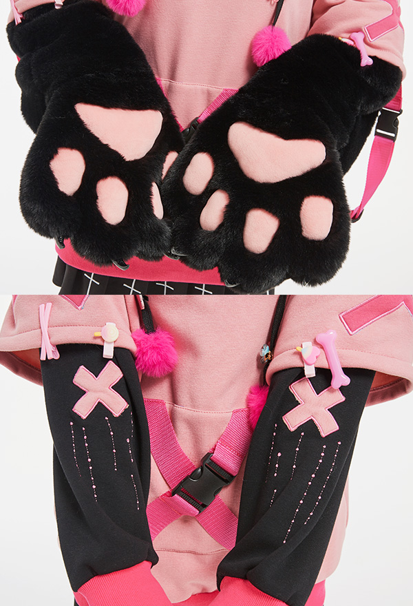 - 1. The two long-sleeved paw gloves can be detached and used as two bags.