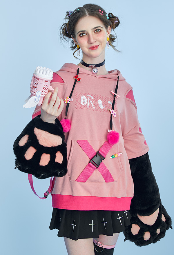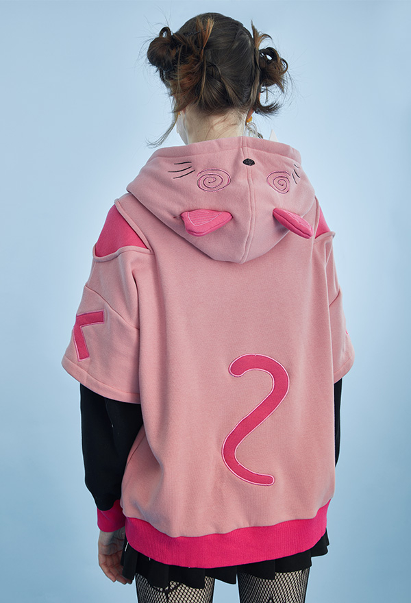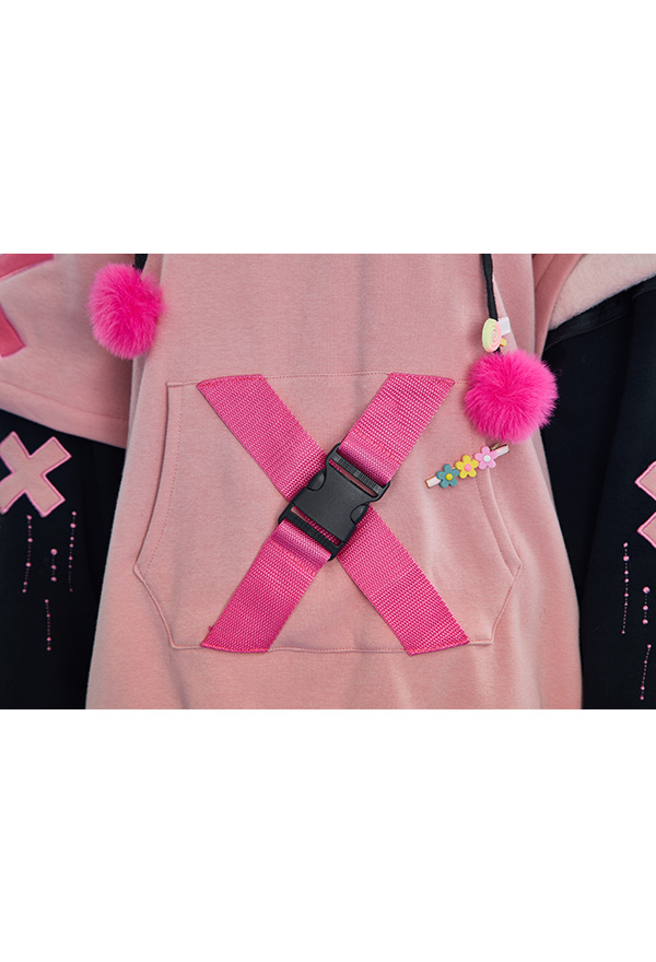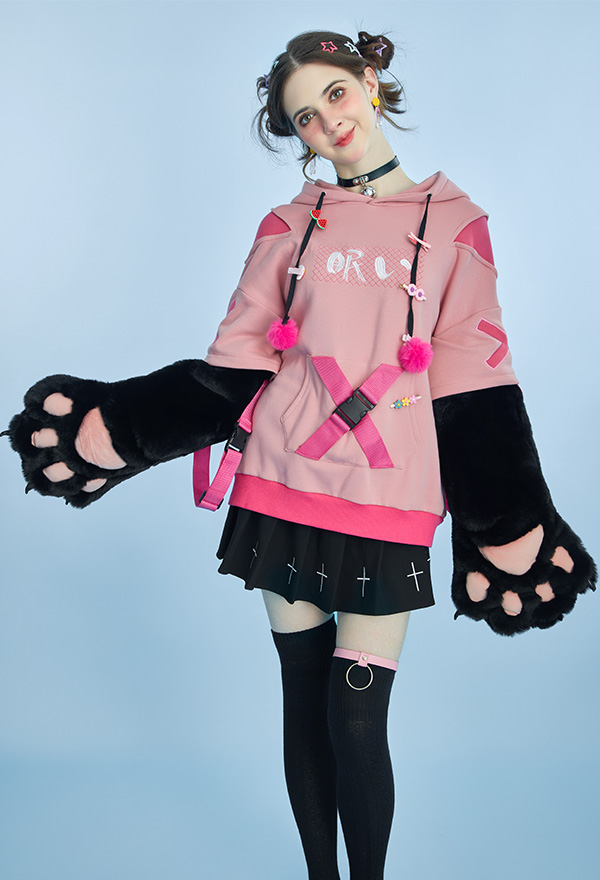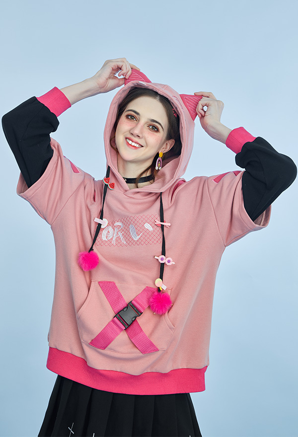 - 1. Special Design - Pink and black contrast color can impress people at the first sight! Cute dizzy kitten style hat can keep you warm. It also features front deep pockets and lovely drawstring.