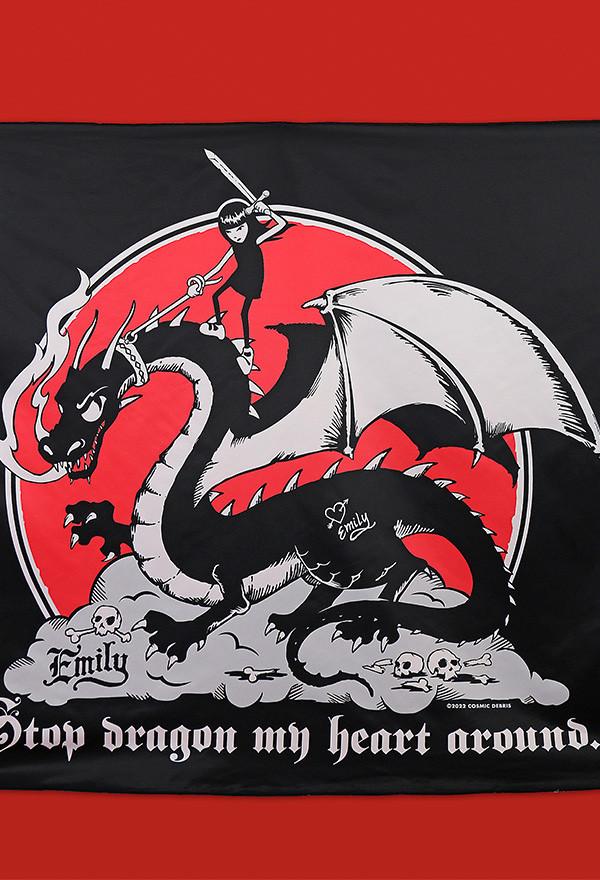[Officially Licensed] Emily the Strange Dragon Print Black Wall Hanging Tapestry Halloween Decorations