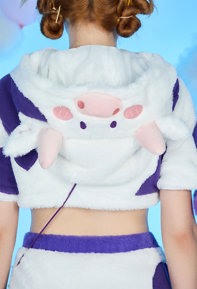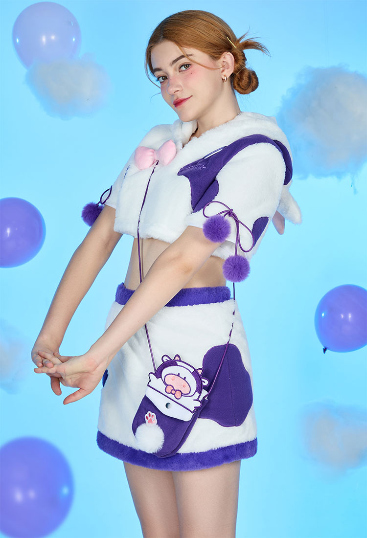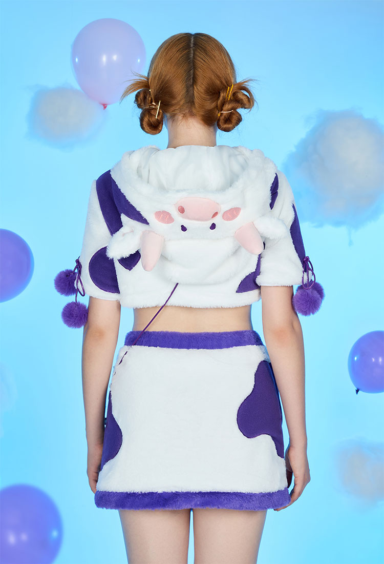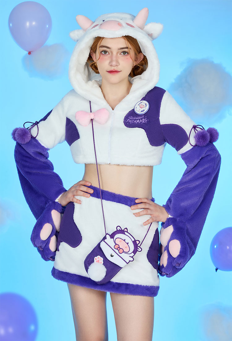 [Officially Licensed] Goodnight Pajamals x Micotaku Cow Momo Plush Paw Hoodie Skirt Set Daily Wear