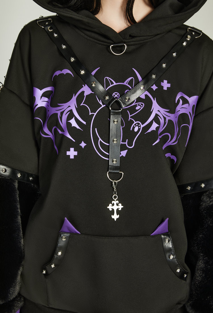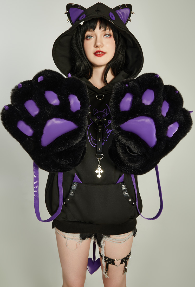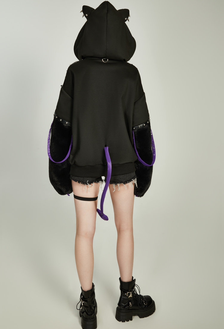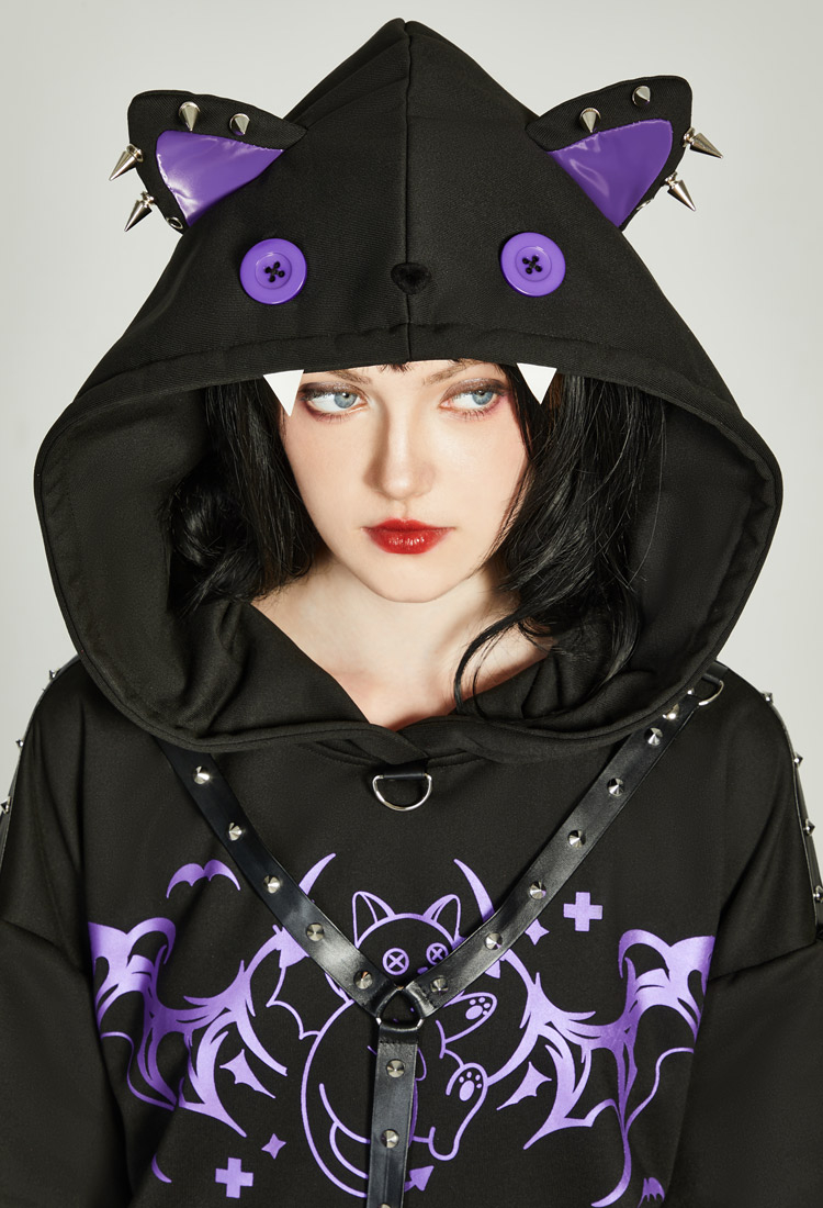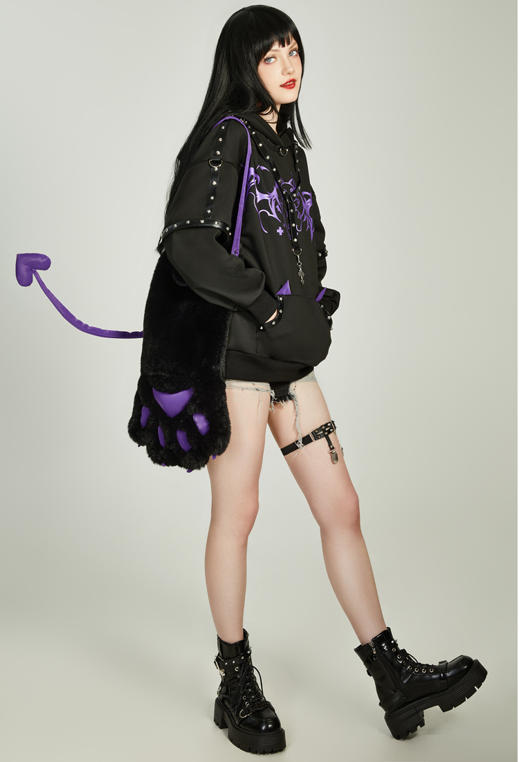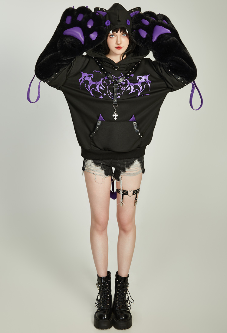 Micotaku Gothic Rivet Design Paw Hoodie Vintage Outfits Daily Wear Comfort Hoodie