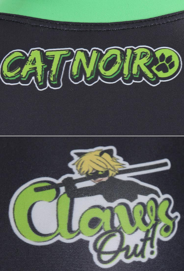 Officially Licensed Miraculous Cat Noir Swimsuit | Women's Black and Green One-Piece Long Sleeve Bathing Suit
