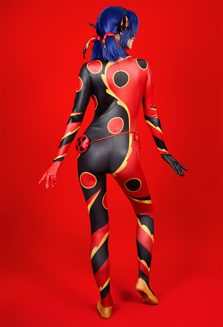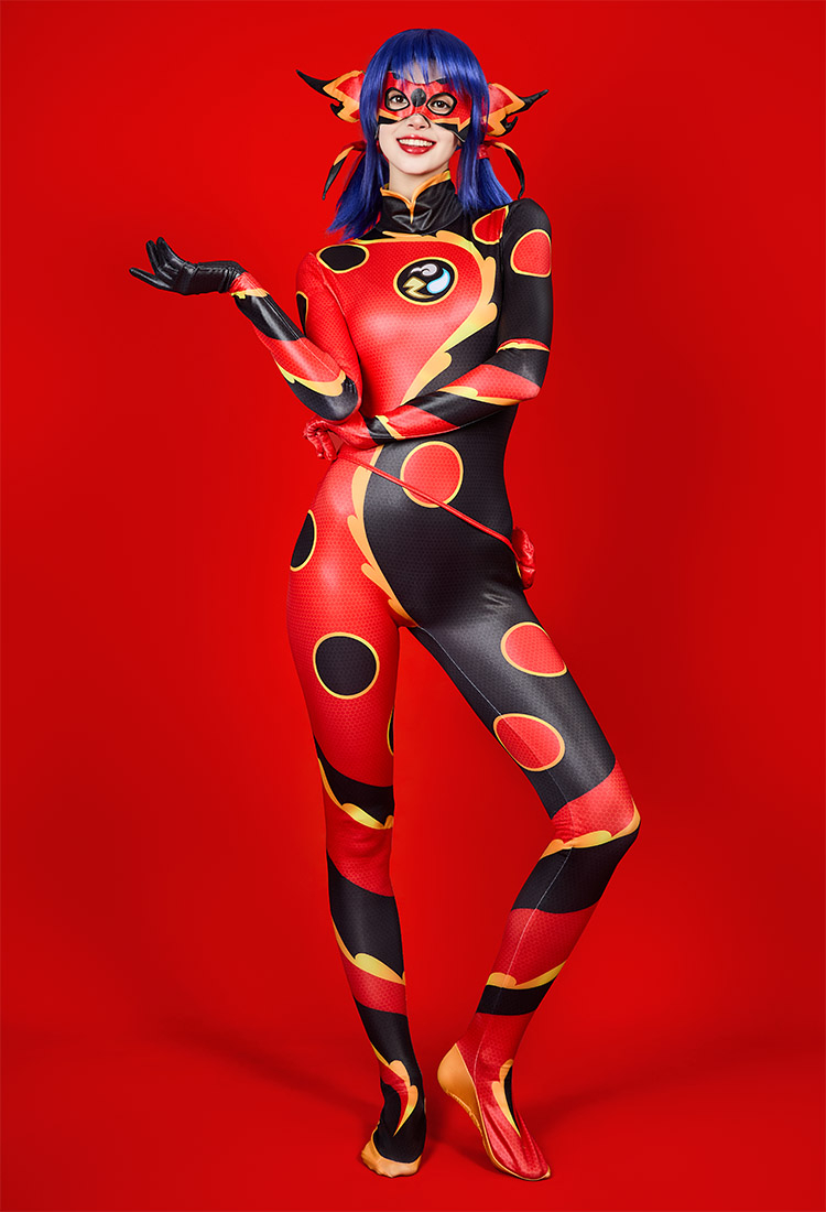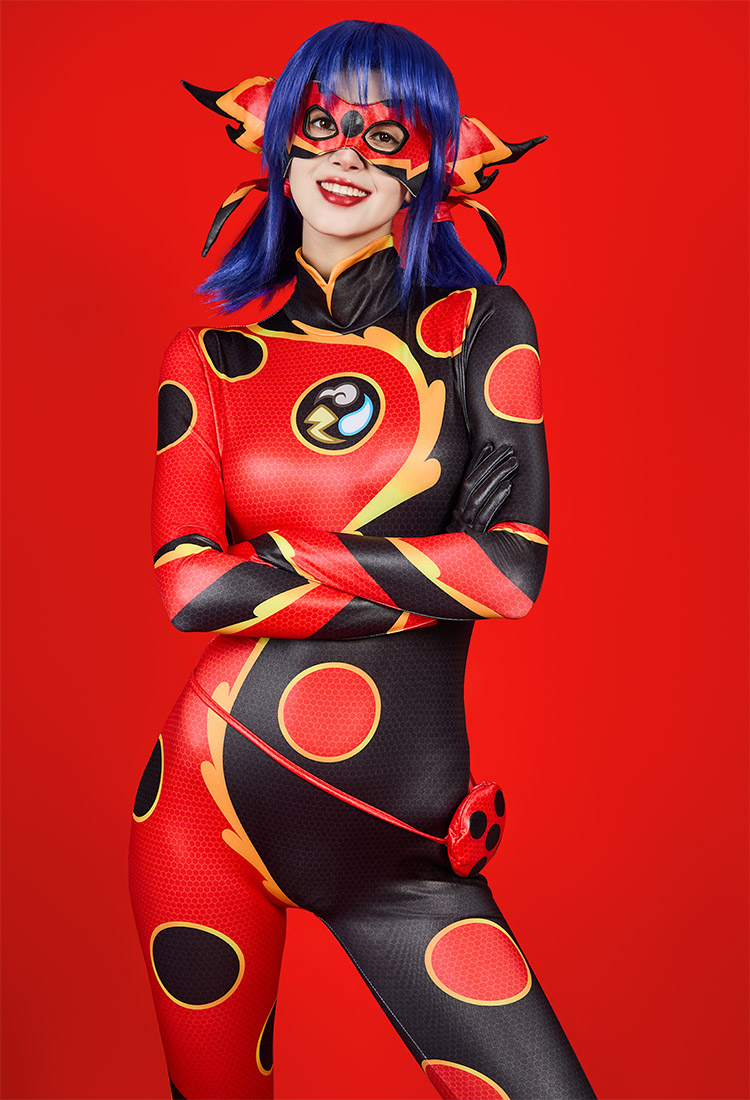 Officially Licensed Miraculous Ladybug Dragon Bug Cosplay Costume | Black and Red Bodysuit for Halloween Costume