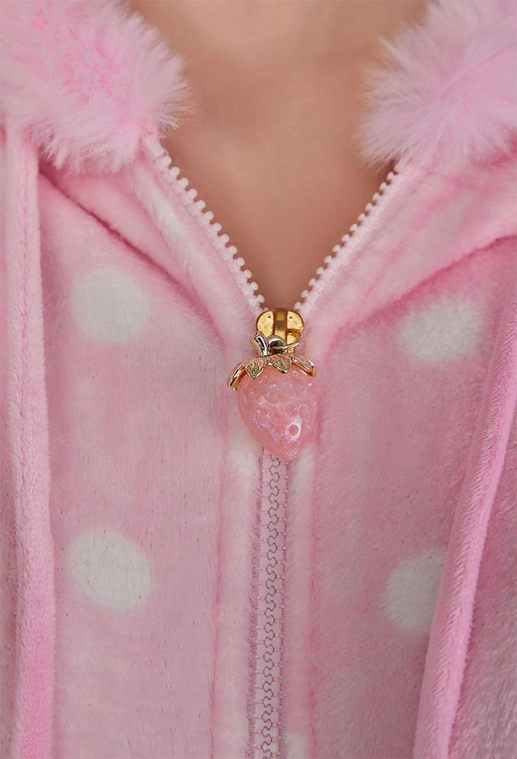 - Made with utmost comfort in mind, this hooded jumpsuit is perfect for those cozy nights in or casual outings with friends. The soft and breathable fabric provides a gentle touch to your skin, while the cute strawberry motif adds a touch of sweetness to your wardrobe