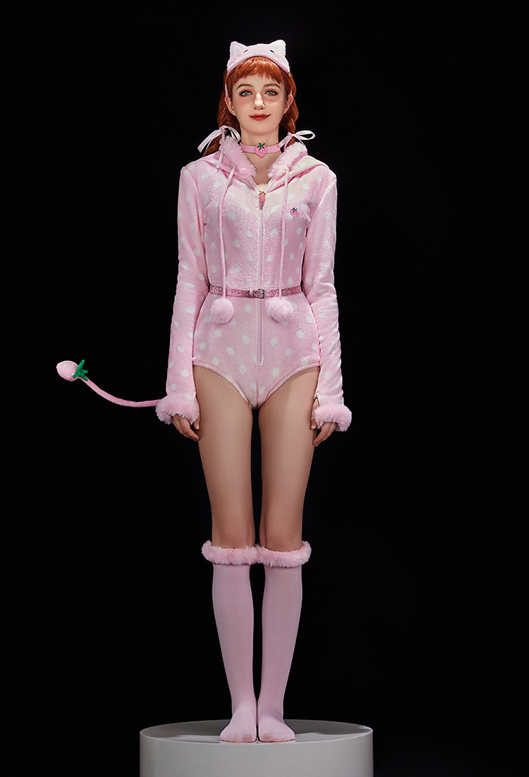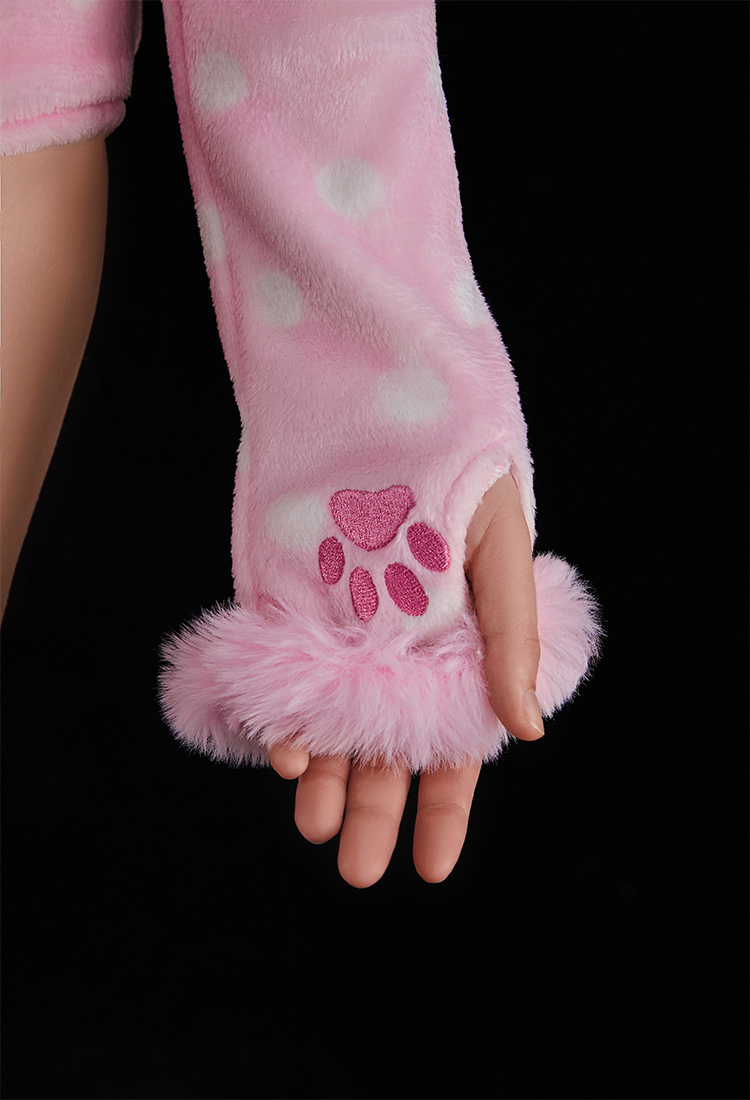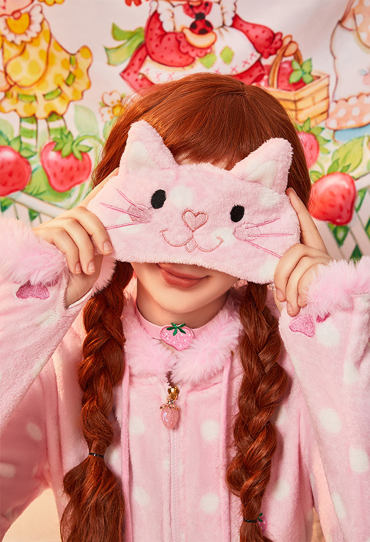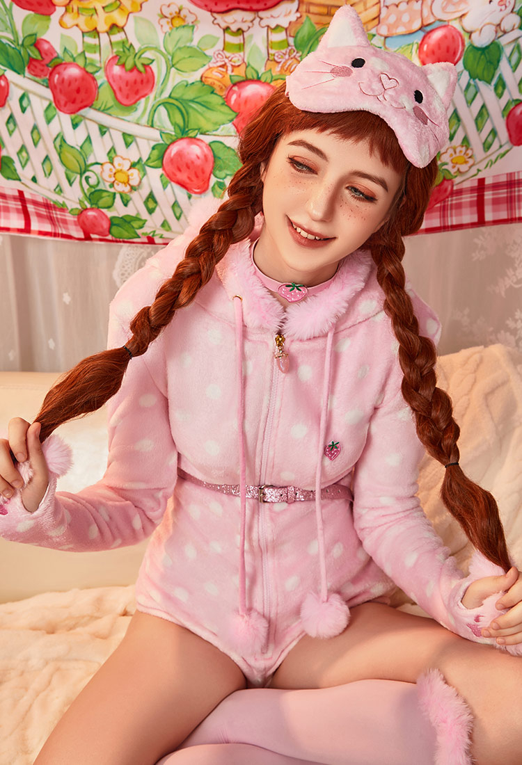 - This adorable piece combines the charm of pink polka dots with a removable tail and intricate strawberry cat paw embroidery, ensuring a stylish and playful look