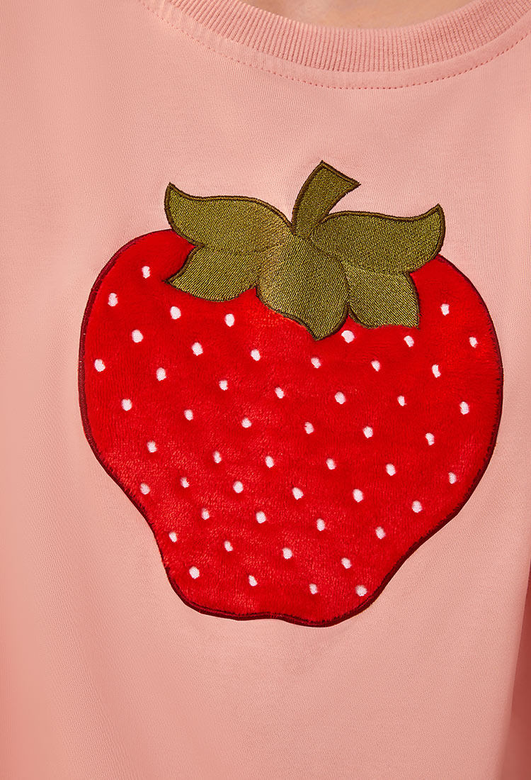 - With its unique strawberry motif, this loungewear set exudes a playful and youthful vibe. The intricate embroidery adds a touch of whimsy and brings the strawberries to life, making it a statement piece in any wardrobe