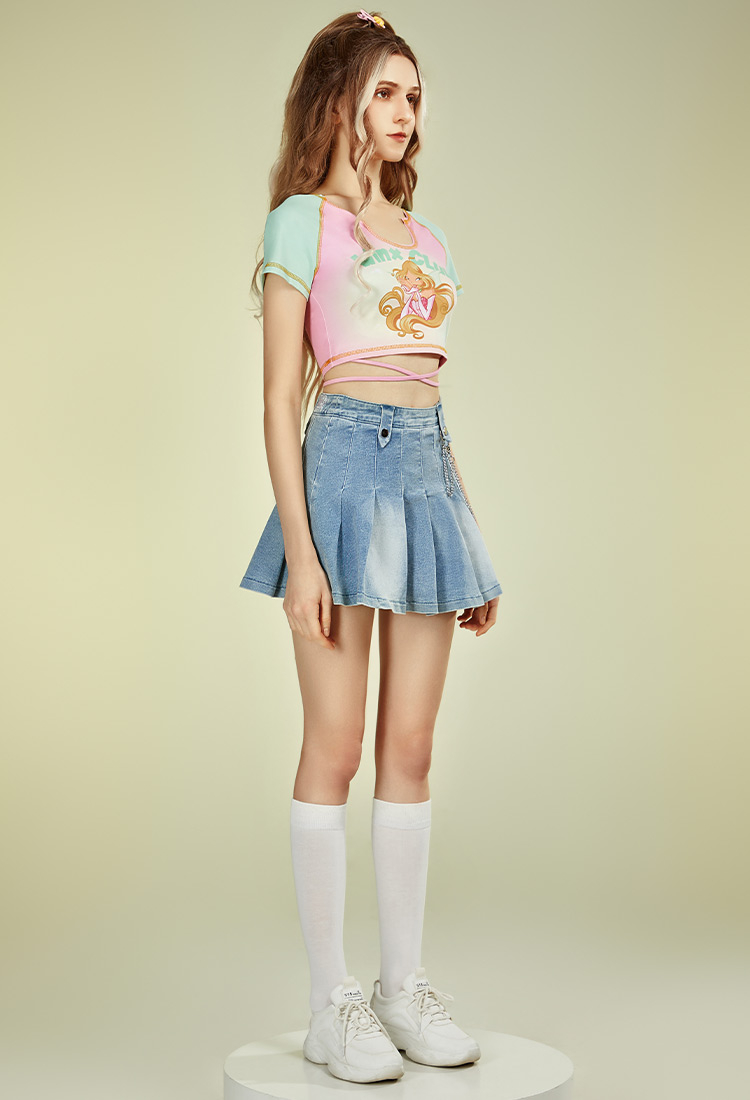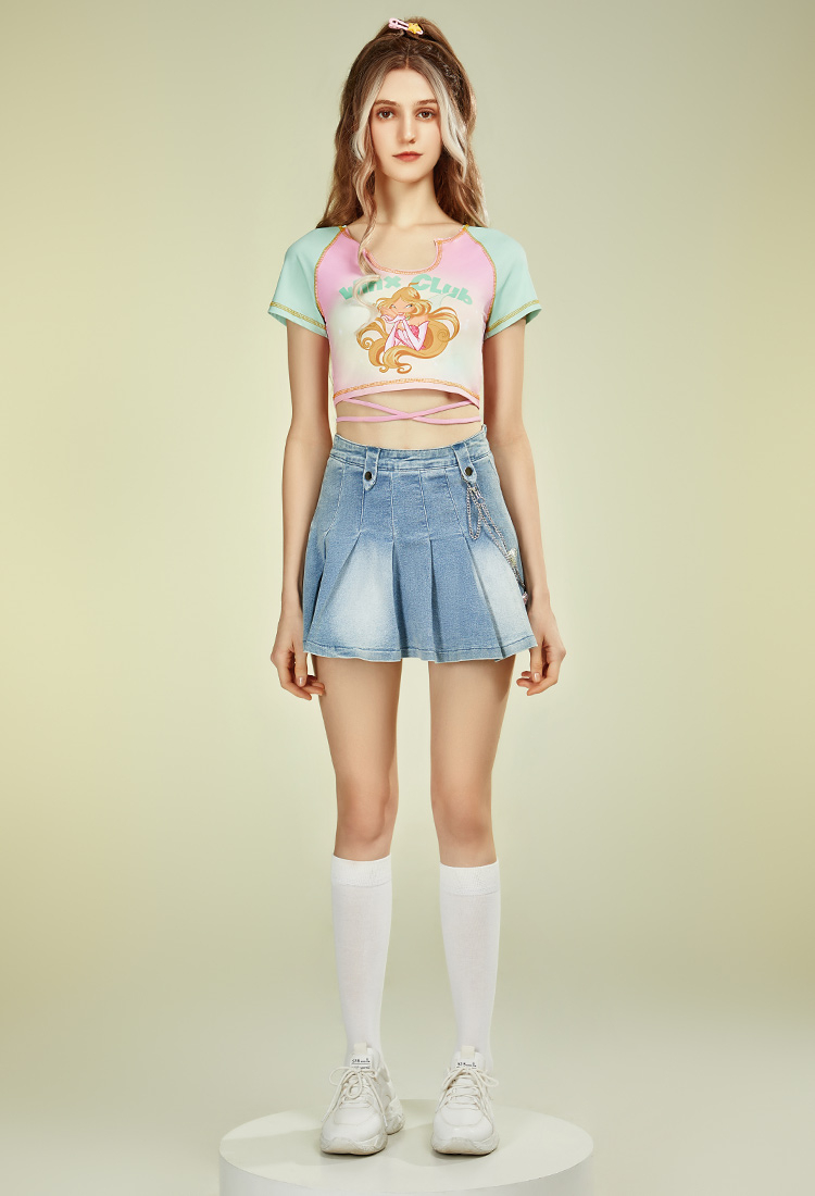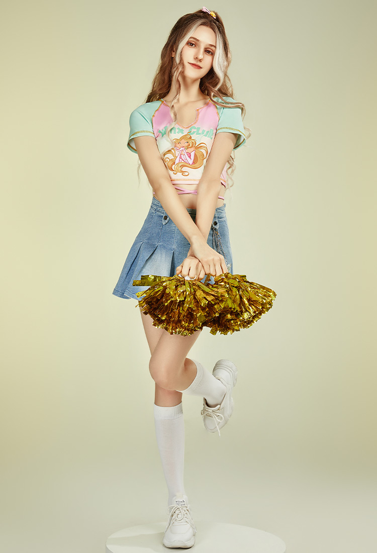 Officially Licensed Winx Club Flora Costume Crop Top Crew Neck T-Shirt Cheerleading Outfit