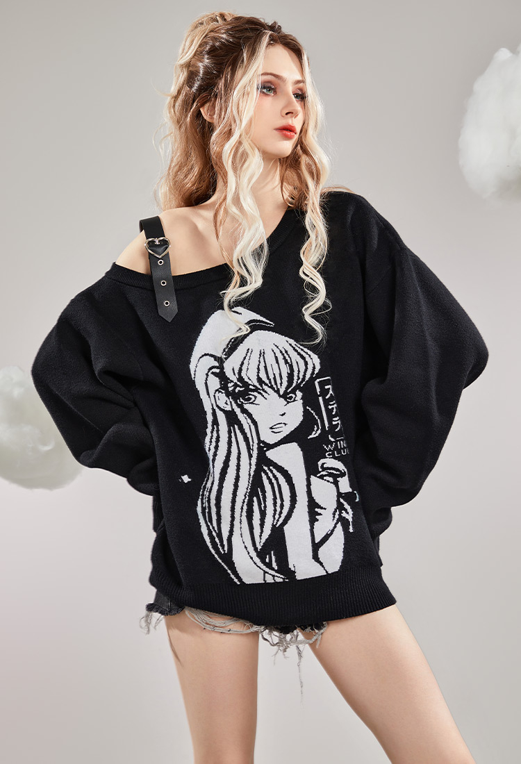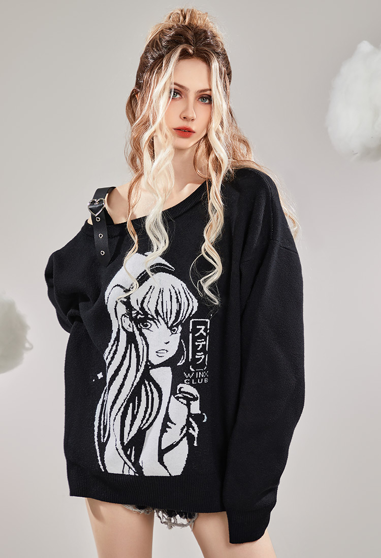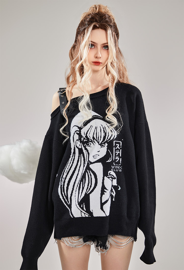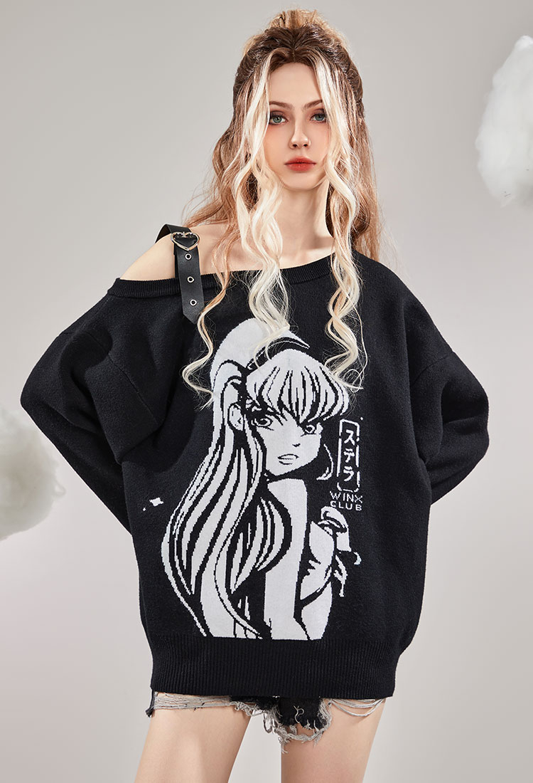 - Introducing the "Stella Printed Off-Shoulder Sweater" - a must-have addition to your wardrobe! Designed with the iconic Winx Club in mind, this sweater captures the essence of magic and glamour.The single-sided off-shoulder style adds a touch of allure and femininity to your look. It allows you to showcase your collarbones while remaining comfortable and relaxed.