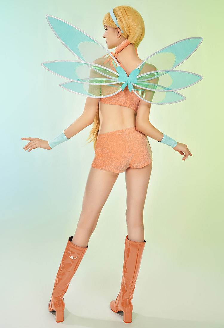 Officially Licensed Winx Club Stella Cosplay Halloween Fairy Costume | Orange Tops & Skirt with Fairy Wings