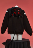 Unleash your inner demon with the Micotaku Devil Bat Hoodie—a show-stopping blend of kawaii goth, streetwear edge, and playful detail! This hoodie features a dramatic bat-winged hood with embroidered fangs and horns, plus a removable devil tail for customizable spooky-chic vibes. The front showcases a bold embroidered design: a mischievous bat flanked by adorable demon and bunny friends. Raglan sleeves with white panels and red cross accents add contrast, while the lace-up neckline brings punk-inspired flair. Crafted from soft, cozy fleece, it’s perfect for layering or making a statement solo. Whether you’re hitting Harajuku streets, cosplaying, or just embracing dark-cute fashion, this hoodie balances cuteness and edge flawlessly.