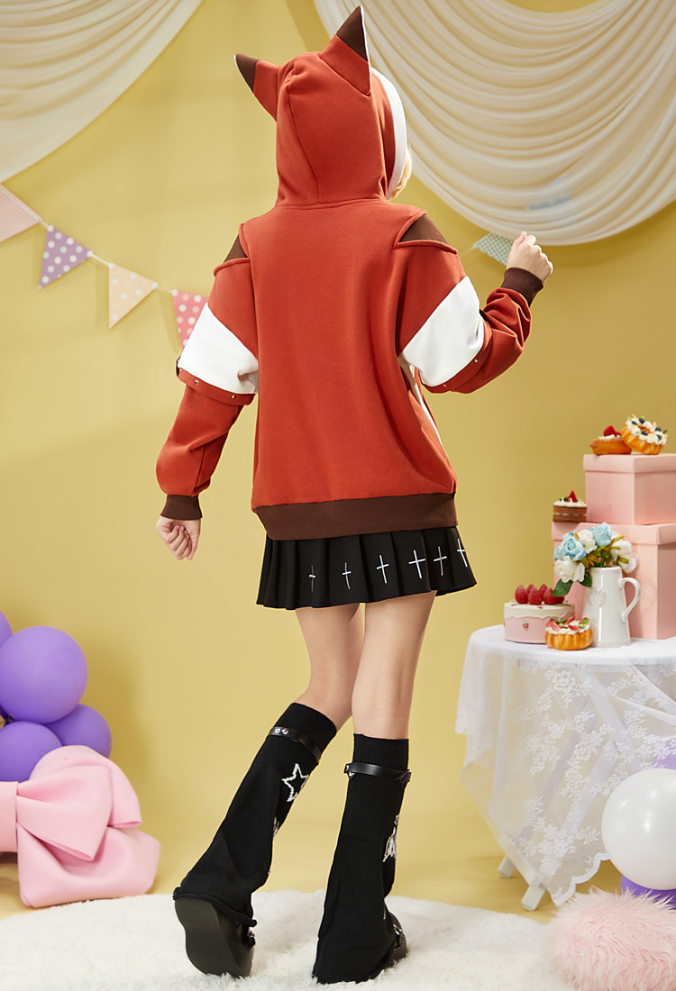 - Step into playful coziness with the Micotaku Fox Comfort Hoodie with Fox Ears and Furry Paws. Featuring a vibrant fox-inspired design with embroidered details, fluffy detachable paw gloves, and a hood with perky fox ears, this hoodie brings both cuteness and comfort. The design and detachable straps add versatility, while the soft sweatshirt fabric ensures everyday wearability.