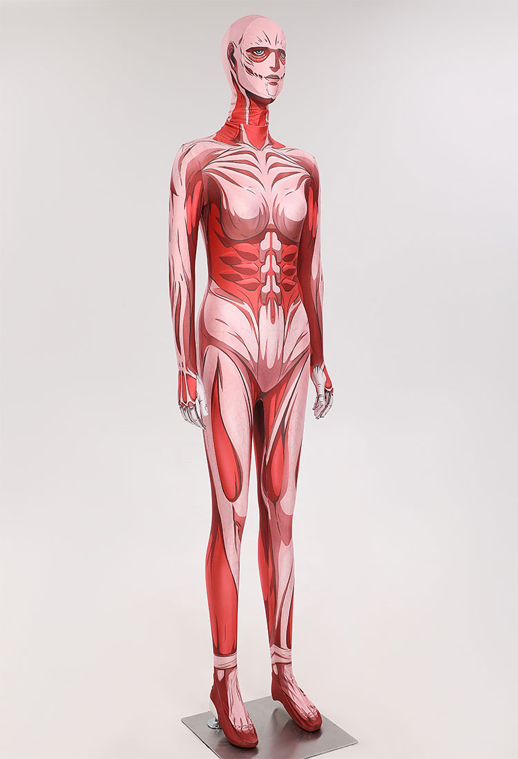 - Crafted with precision and attention to detail, this costume perfectly captures the essence of the formidable Female Titan from the popular anime series.Made from high-quality materials, this bodysuit is not only comfortable to wear but also durable for all your cosplay adventures.