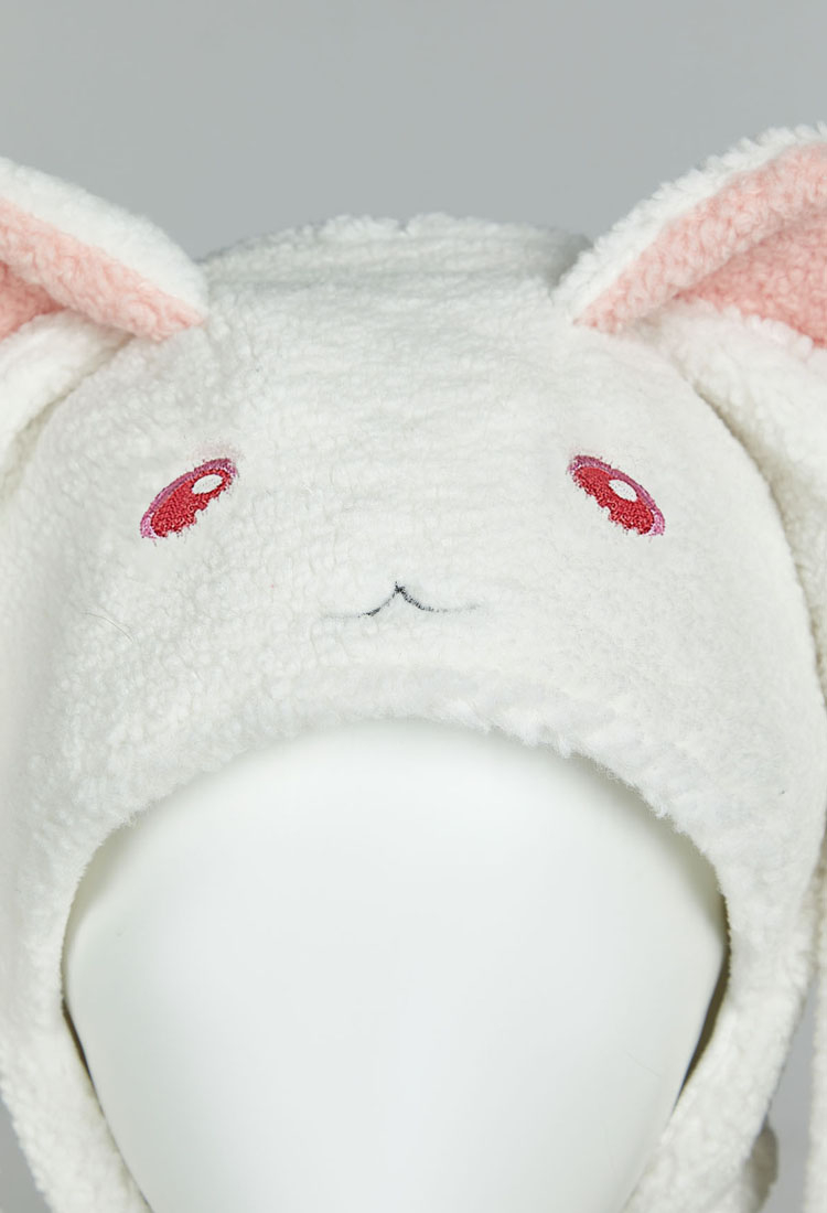 Stay warm and magical with this adorable Kyubey-inspired plush hat, designed after the iconic character from Puella Magi Madoka Magica! Made from ultra-soft fleece fabric, this hat features Kyubey’s signature pink ears, red embroidered eyes.