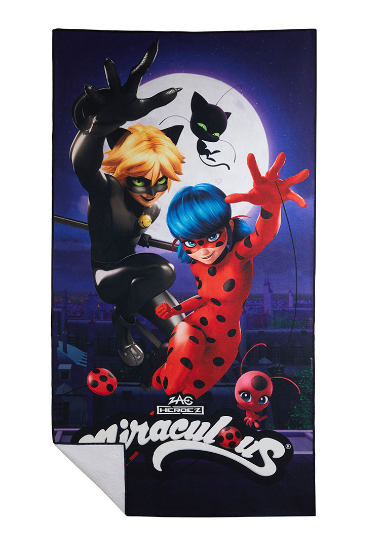 Bring superhero style to your daily routine with this officially licensed Miraculous Ladybug and Cat Noir bath towel. Featuring vibrant character artwork inspired by the beloved series, this towel is made from soft, absorbent fabric for comfort and practicality. Perfect for bath time, beach trips, swimming, or everyday use, it’s a fun and functional essential for fans of all ages.