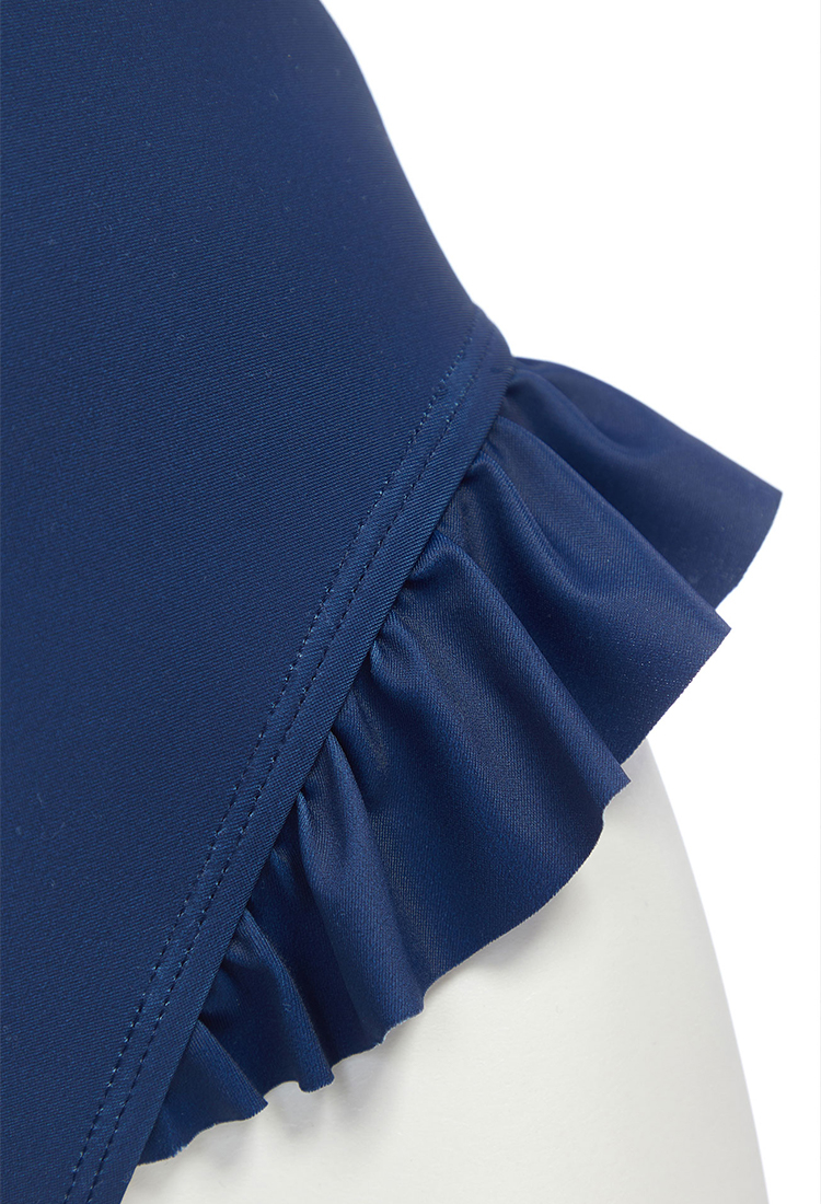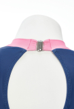 - Form-Fitting with Cute Details – Pink contrast panels, ruffled hem, and a clasp-back closure ensure a flattering, secure, and playful fit.