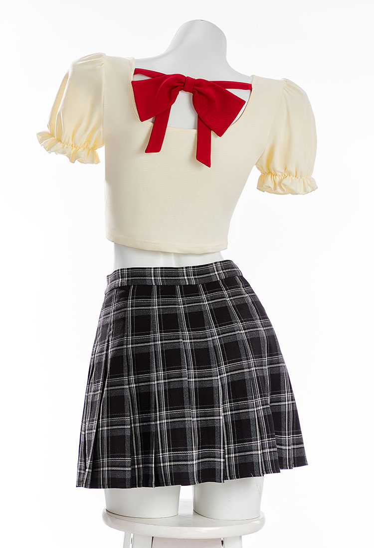 Step into the magical world of Puella Magi Madoka Magica with this officially licensed cosplay set! Inspired by Madoka Kaname, the outfit features a sweet, cropped square-neck top with puffed sleeves, delicate ruffles, and embroidered “Madoka Magica” text + a tiny red bow—channeling her innocent charm. Paired with a classic black-and-white plaid pleated skirt, it balances anime-inspired kawaii style with Lolita-inspired elegance. Perfect for cosplay events, anime conventions, or adding a touch of magical girl flair to your wardrobe, this set is made from soft, breathable fabrics for all-day comfort. Whether you’re reenacting scenes or showing off your fandom, this officially licensed ensemble captures Madoka’s iconic look with authentic details and quality craftsmanship.