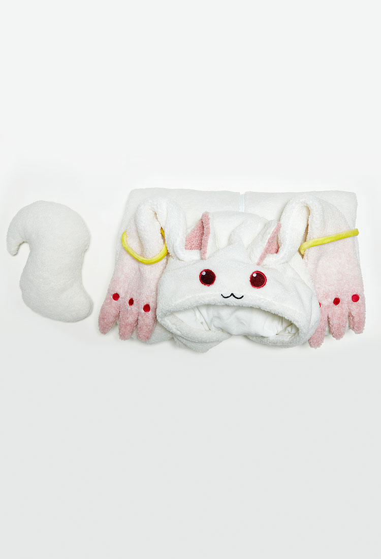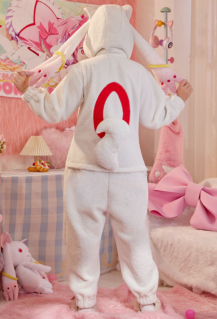 Transform into the mysterious and adorable Kyubey with this officially licensed Puella Magi Madoka Magica Cozy Kyubey Jumpsuit Pajama. Crafted from ultra-soft sherpa fleece for ultimate warmth and comfort, this full-body pajama captures Kyubey’s signature white design with pink ear details and a detachable tail. Perfect for lounging, anime marathons, or themed sleepovers, it combines cozy comfort with magical style — a must-have for any Madoka Magica fan!