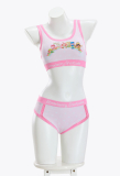 - Matching Two-Piece with Playful Touches – Includes a sleeveless tank and shorts with a cute pink polka dot pattern and branded waistbands, creating a coordinated, cheerful look.