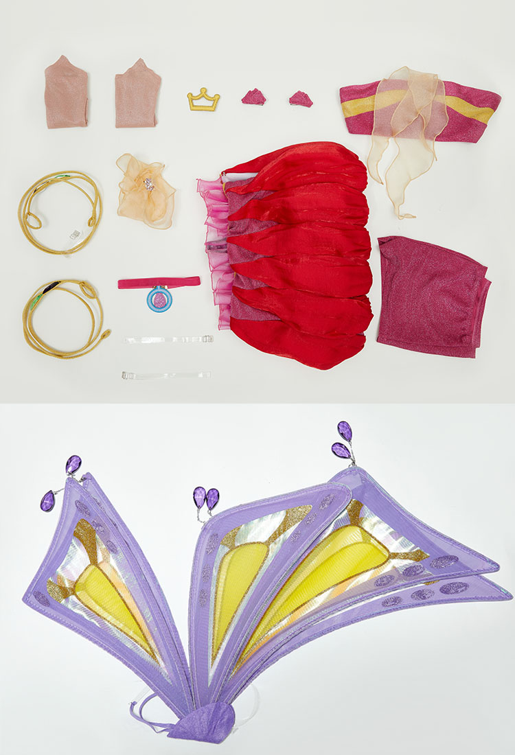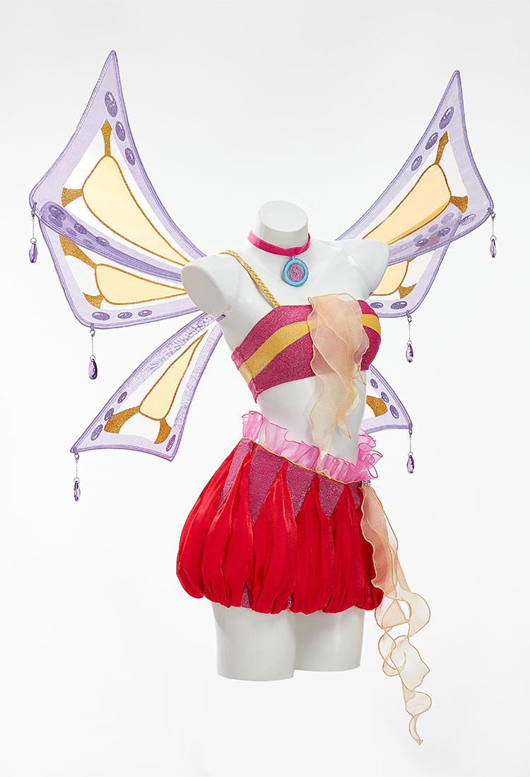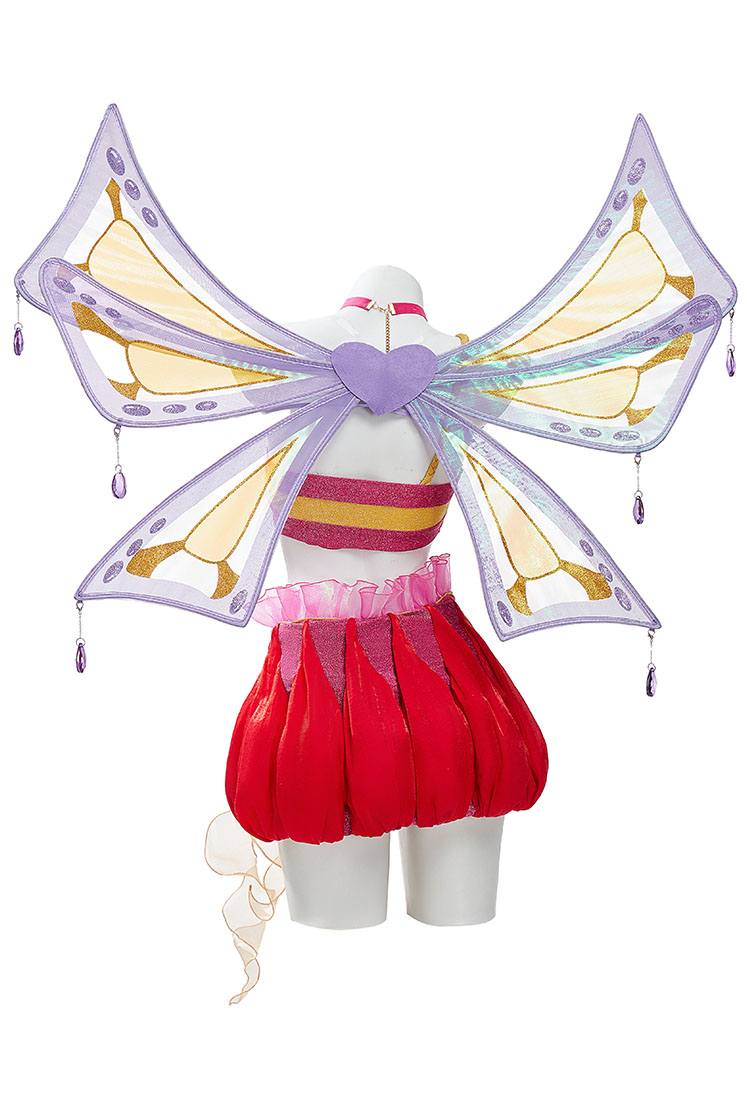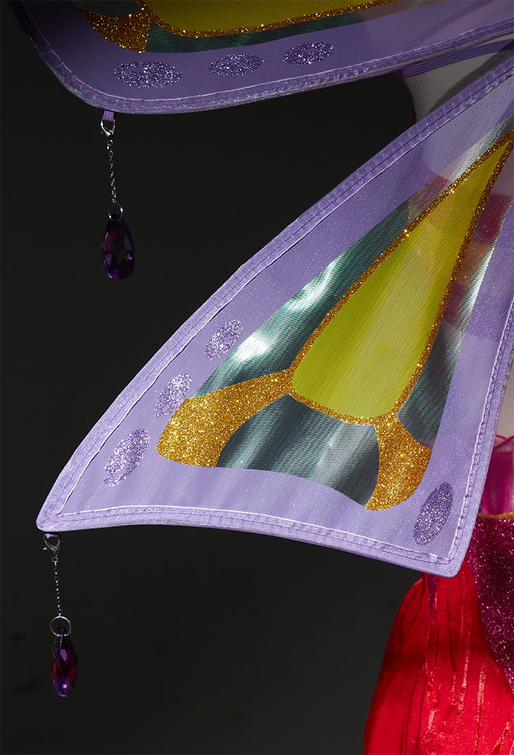 Transform into Musa with this dazzling Enchantix cosplay costume! Crafted with a mix of shimmering fabrics for a glamorous look, the dress is padded with cotton to create a voluminous, three-dimensional skirt shape. The highlight is the custom-designed wings, which can be worn front or back with adjustable straps. Beaded wing details are detachable for easy storage. Every detail reflects Musa’s enchanting style, making it perfect for conventions, performances, or collectors.
